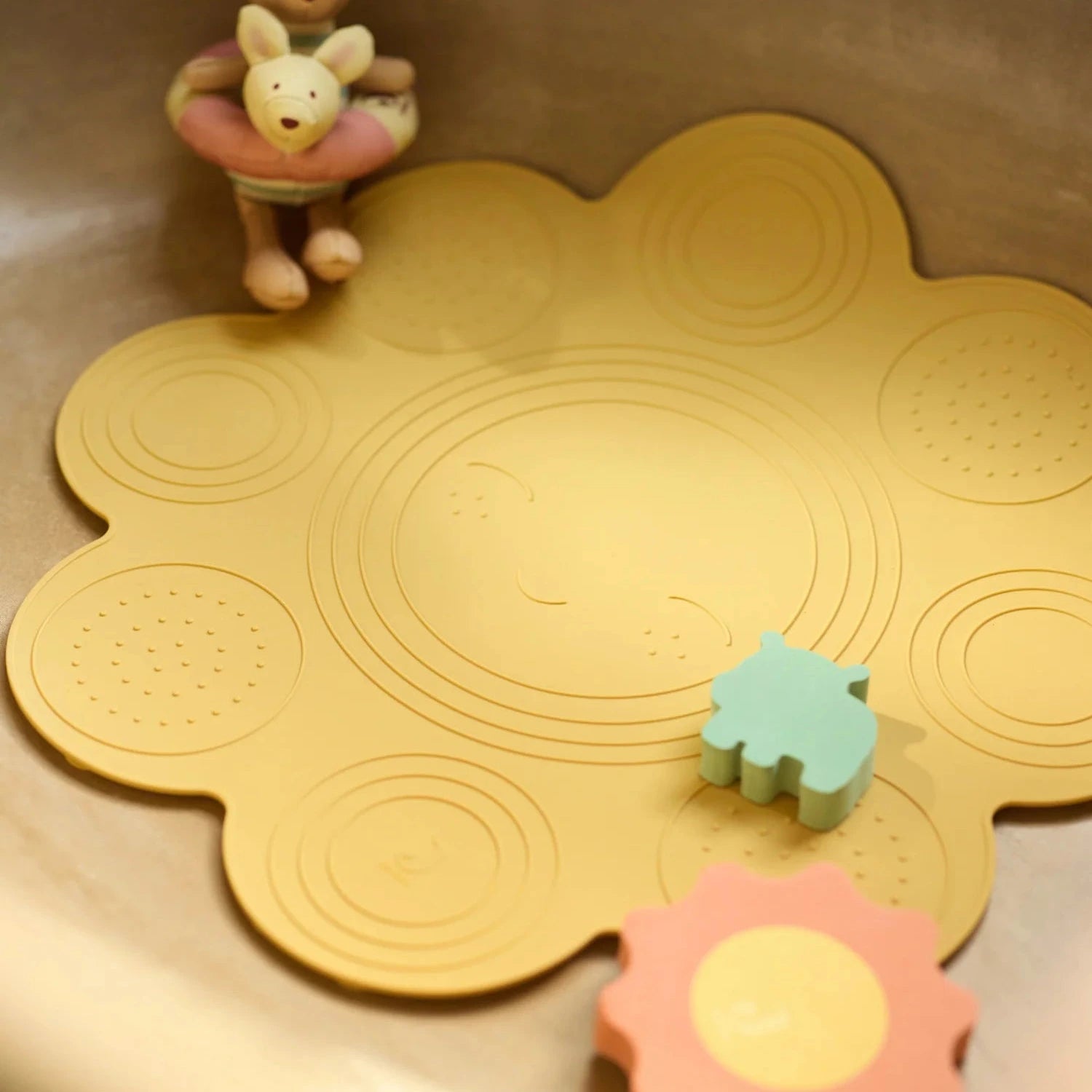 Machen Sie jedes Badeerlebnis zu einem sicheren und gemütlichen Moment – mit dieser Badematte aus Silikon in Form einer fröhlichen Sonne. Die Matte besteht aus 100 % Silikon und verfügt über eine rutschfeste Oberfläche, sodass Ihr Kleines beim Baden oder Duschen sicher und bequem sitzen oder stehen kann. Die Unterseite haftet fest auf fast jedem Untergrund, sodass die Matte zuverlässig an ihrem Platz bleibt. Praktisch, rutschfest und dank der sonnigen Form zudem besonders hübsch anzusehen – perfekt für sicheres Planschvergnügen mit Ihrem kleinen Schatz!